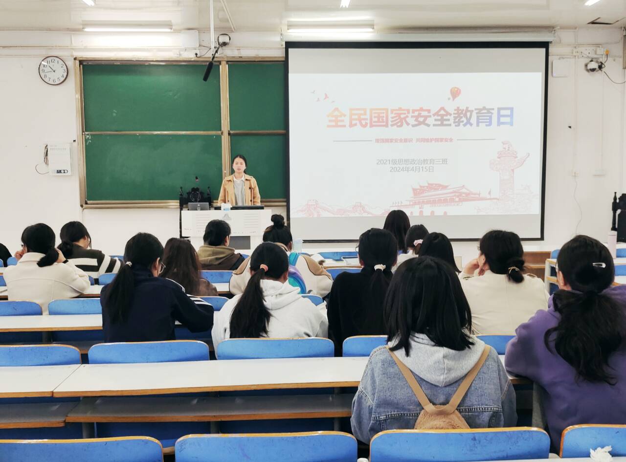 4月15日上午,ok138cn太阳集团5292021级思想政治教育三班在社科楼514召开“全民国家安全教育日”主题班会。ok138cn太阳集团5292021级思想政治教育三班全体成员参与本次会议。班会由副班长易从漫主持。