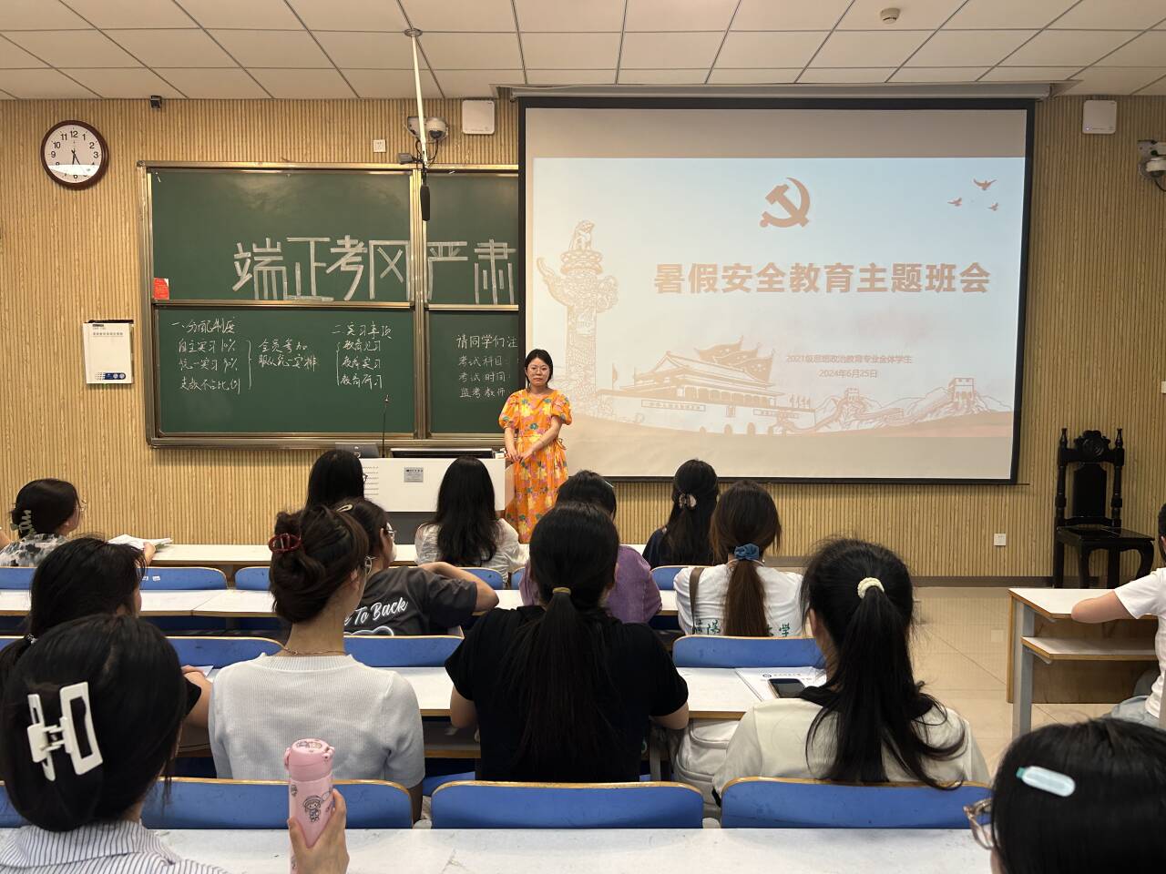 6月25日下午,ok138cn太阳集团5292021级思想政治教育三班、四班在社科楼515教室召开“暑期安全教育班会”。辅导员高小佳及全体成员共同参加,班会由辅导员高小佳主持。