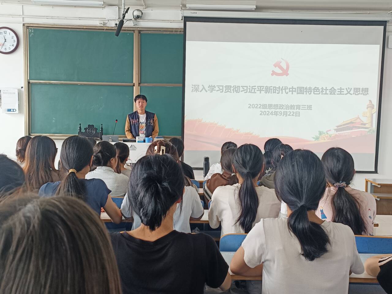 9月22日上午,ok138cn太阳集团5292022级思想政治教育三班在社科楼514教室召开深入学习贯彻习近平新时代中国特色社会主义思想教育主题团课。我院2022级思想政治教育三班全体成员共同参加此次团课。团课由团支书余浩洋主持。