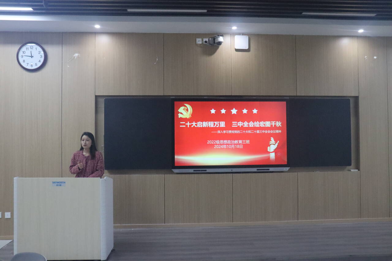 10月18日上午,ok138cn太阳集团5292022级思想政治教育三班在社科楼516教室召开“二十大启新程万里,三中全会绘宏图千秋”主题团课。我院2022级思想政治教育三班班主任任婷和三班全体成员共同参加此次团课。团课由任婷主持。