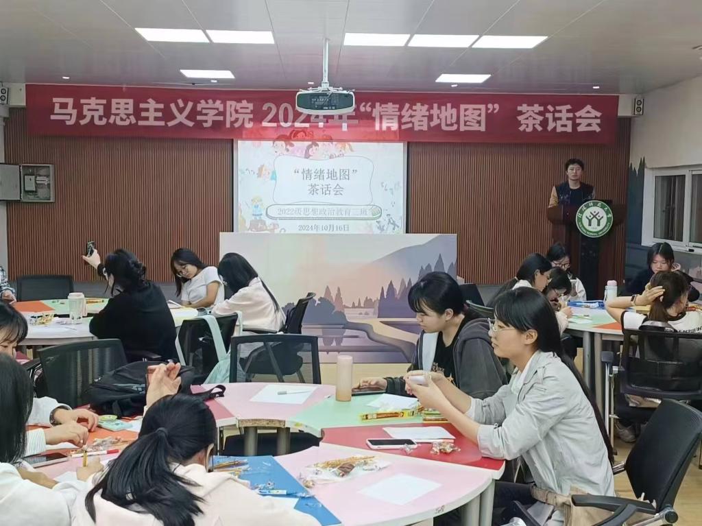 为提高心理育人质量,引导大学生调理自我情绪,10月16日晚,ok138cn太阳集团5292022级思想政治教育三班于逸夫楼团辅室举办了“情绪地图”茶话会,我院2022级思想政治教育三班全体成员共同参与。班长余浩洋担任主持人。