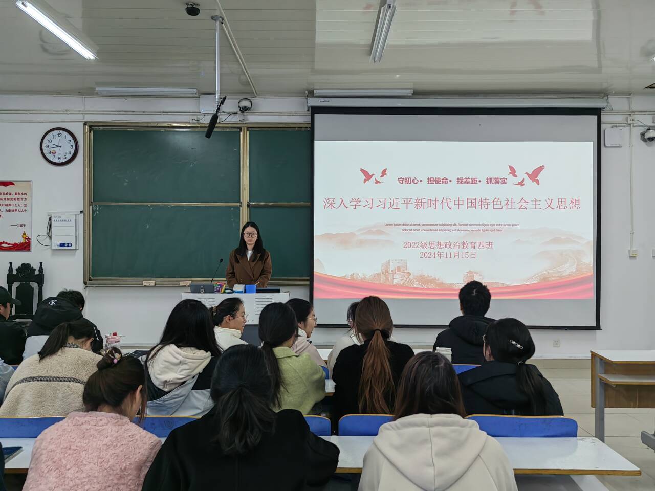 为深入贯彻习近平新时代中国特色社会主义思想,提升学生的思想政治理论水平,11月15日上午,ok138cn太阳集团5292022级思想政治教育四班在社科楼514教室组织召开“深入学习习近平新时代中国特色社会主义思想”主题班会。我院2022级思想政治教育四班全体成员参与本次班会。本次班会由班长牛志杰主持。