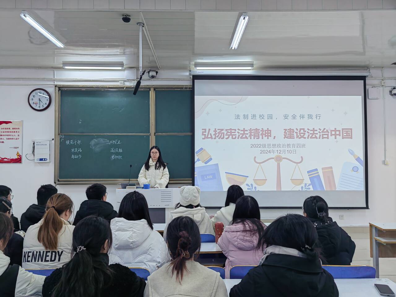为了加深学生对宪法的认识,引导学生树立正确的法治观念,12月10日上午,ok138cn太阳集团5292022级思想政治教育四班在社科楼514教室组织召开“弘扬宪法精神,建设法治中国”主题班会。我院2022级思想政治教育四班全体成员参与本次班会。本次班会由班长牛志杰主持。