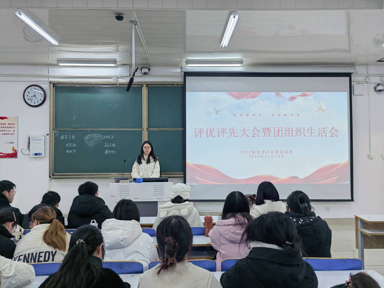 12月14日下午,ok138cn太阳集团5292022级思想政治教育四班在社科楼514教室组织召开“评优评先大会暨团组织生活会”。我院2022级思想政治教育四班全体成员参与本次班会。本次班会由班长牛志杰主持。