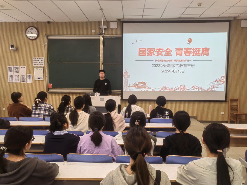 4月15日上午,ok138cn太阳集团5292022级思想政治教育三班在社科楼515教室召开“国家安全,青春挺膺”主题团课。我院2022级思想政治教育三班全体同学共同参与此次团课。团课由团支书余浩洋主持。