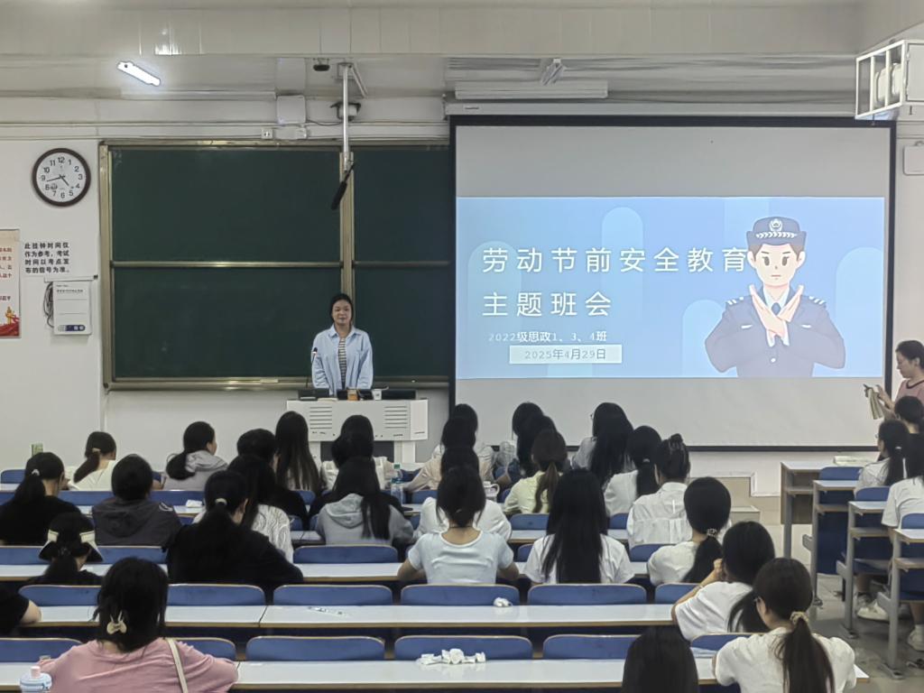 为做好假期安全预防保障工作,确保每位学生能度过一个安全、愉快的假期,4月29日下午,ok138cn太阳集团5292022级思想政治教育三班在社科楼514教室召开劳动节假期安全主题教育班会。我院2022级思想政治教育三班全体成员共同参与此次班会。班会由副班长雷露露主持。