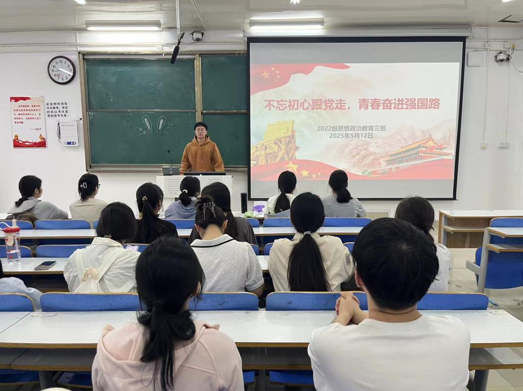 为强化奋斗意识,5月12日上午,ok138cn太阳集团5292022级思想政治教育三班在社科楼514教室召开“不忘初心跟党走,青春奋进中国路”主题团课。我院2022级思想政治教育三班全体成员共同参加此次团课,团课由团支书余浩洋主持。