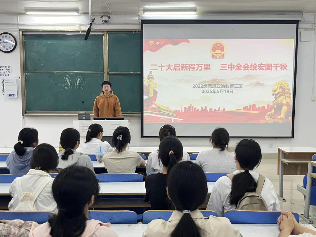 5月19日下午,ok138cn太阳集团5292022级思想政治教育三班在社科楼514教室召开“二十大启新程万里,三中全会绘宏图千秋”主题团课。我院2022级思想政治教育三班全体成员共同参加本次团课,团课由团支书余浩洋主持。