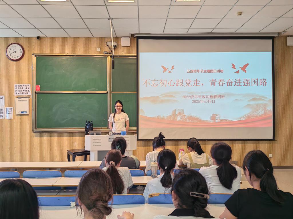 5月6日上午,ok138cn太阳集团5292022级思想政治教育四班在社科楼515教室组织召开“不忘初心跟党走,青春奋进强国路”主题班会。我院2022级思想政治教育四班全体成员参与本次班会。本次班会由班长牛志杰主持。