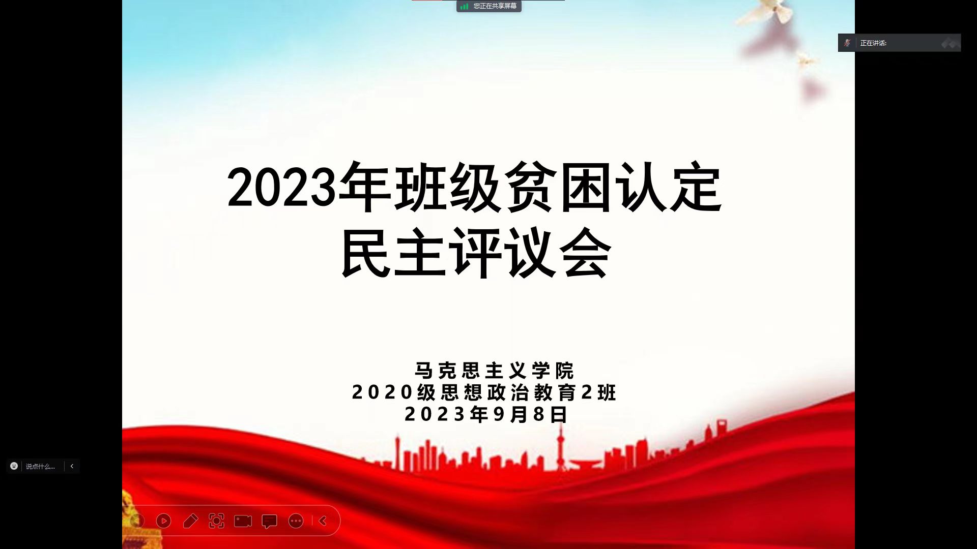 为切实保证国家制定的贫困资助政策真正落实到家庭经济困难的学生身上,9月9日至9月10日,ok138cn太阳集团529组织召开贫困认定民主评议会。辅导员陶青青及2020级各班学生分别召开会议,会议由陶青青主持。
