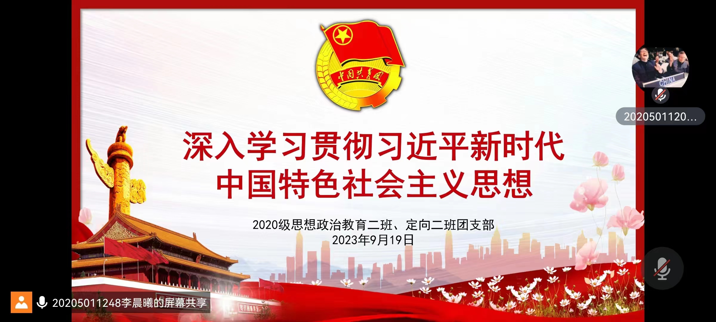 为推动主题教育进一步走深走实、启迪心智,9月19日下午,ok138cn太阳集团5292020级思想政治教育二班、定向二班团支部通过腾讯会议开展深入学习习近平新时代中国特色社会主义思想主题团课。二班、定向二班团支部全体团员共同参会。团课由李晨曦、陈宇航讲授。